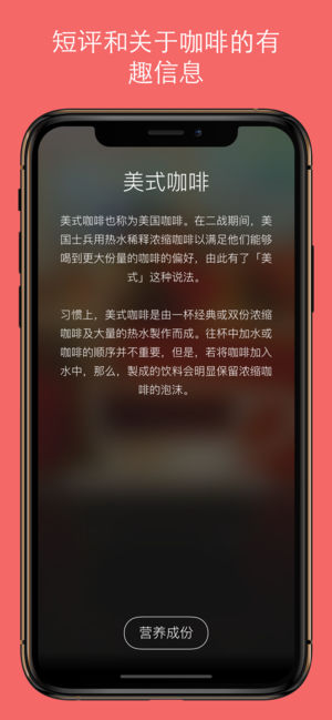 由具有多年经验的专家级咖啡师提供的基于意式浓咖啡的流行饮品和替代冲泡方法。 - 获得中国应用商店“2013应用商店最佳应用”; - 在30个国家“食物及饮品”大类中是排名第一的付费应用; - 在8个国家是排名第一的付费应用; - 在韩国获得“编辑选择奖”; - 被crateandbarrel.com网站推荐; - 被苹果公司在一个电视广告中推荐。 以横截面图展示饮料、该过程的每一步的影片、有关咖啡的有趣信息、特别创作的音乐和令人印象深刻的图形设计——所有这些将帮助拓展您的视野,并让您了解“咖啡世界”。 通过经历从初学者到专家的阶段,您将会对饮料有全新的了解,或许其中的一种饮料会成为您的最…