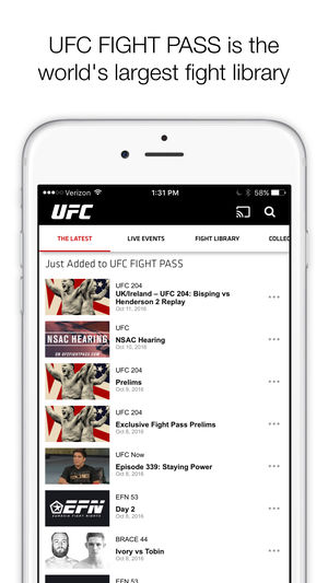 The UFC app is the ultimate tool for the dedicated fight fan! Get breaking news, exclusive video, and live streams, and watch Pay-Per-View events directly on your Apple device. Sign up for UFC FIGHT PASS to watch exclusive UFC FIGHT PASS events live. Plus, get access to the world's biggest fight lib…