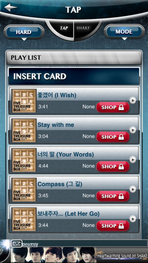 以刺激感情的感性音乐对韩国与日本的歌迷着迷的FTISLAND的节奏动作游戏! ********* 轻敲及更多 -- 向左,向右,旋转,摇动 FTISLAND SHAKE不仅有传统游戏的“轻敲”方式, 也提供一种新型“摇-旋”模式, 这是由dooub开发的一种无停顿姿势技术。“摇-旋”模式为游戏带来全新体验, 让你可有DJ摆弄唱机转盘的感觉。, Card Deck System 当你完成每局游戏时, 纸牌堆牌系统会奖励你纸牌。如果你是粉丝, 你能收集到包括明星们未公开照片的纸牌。在游戏模式, 那些纸牌能在游戏中用作一个物品来赚取更多得分及获得更多纸牌。, Make your o…