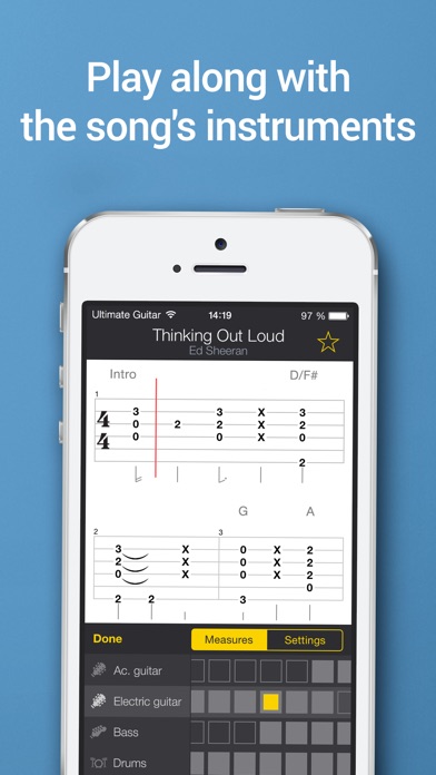 TAB PRO IS THE WORLD'S #1 GUITAR TAB SERVICE. Learn, practice and play your favorite songs anytime, anywhere. Get instant access to 250,000 interactive tabs with playback and multiple instruments. View favorite tabs and create playlists even offline. Get free daily catalog updates with latest music releases. Tab Pro allows you to: ► Hear how the song is supposed to sound while learning it ► Learn how to play every instrument part of the song ► Use tabs as backing tracks to play along with your favorite songs ► Change the song's tempo to practice at a comfortable speed ► Access tabs on computer, phone or tablet ► Sync your subscription and favorite tabs across devices and platforms using single account STAY IN TOUCH Facebook: https://www.facebook.com/UltimateGuitar Twitter: https://twitter.com/ultimateguitar Instagram: https://www.instagram.com/ultimateguitar/ PROBLEMS? FEEDBACK? Let us help you in person - contact development team at support-tabprohd@ultimate-guitar.com and your feedback will be heard. We strive for excellence and we're always eager to improve your Tab Pro experience! Please do not post bug reports or feature requests as an App Store review. SUBSCRIPTION INFORMATION • You can choose between 1-month, 3-months, 12-months subscriptions and lifetime access, all options give you unlimited access to all of the app's content and daily updates • The subscription plans are: $2.99 for 1 month, $5.99 for 3 months, $20.99 for 12 months and $29.99 for Lifetime Membership* • Payment will be charged to iTunes Account at confirmation of purchase • Subscription automatically renews unless auto-renew is turned off at least 24-hours before the end of the current period • Account will be charged for renewal within 24-hours prior to the end of the current period at the cost of the chosen package • Subscriptions may be managed and auto-renewal may be turned off by going to your device's Account Settings after purchase • No cancellation of the current subscription is allowed during active subscription period • You can read our privacy policy at www.ultimate-guitar.com/about/privacy.htm *Price are equal to the value that Apple's App Store Matrix determines is the equivalent of the subscription price in $USD.