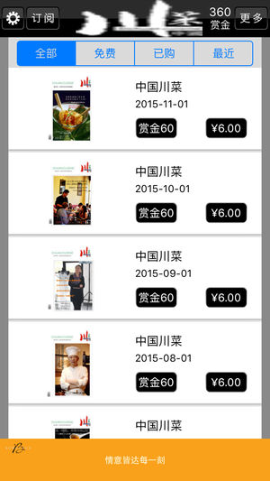 中国川菜: 家常菜是家庭日常制作食用的菜肴,家常菜,是中菜的源头,也是地方风味菜系的组成基础。家庭利用现在的调味品也可以炒制出的菜肴。冬季是进补的好季节,但 有一点要注意的是,进补并不是一定要吃多么好的东西,一些看起来很简单的菜肴,只要用的时候适当,也能起到意想不到的良好效果 关于本杂志订阅注意事项: 1、中国川菜杂志为月刊,一个月一期 2、订阅杂志,您可以选择 .订阅三个月,价格2.99美元或18元人民币 .订阅六个月,价格4.99美元或30元人民币 .订阅1年, 价格7.99美元或50元人民币 订阅从下个月开始,本月杂志赠送 3、过刊价格为0.99美元或6元人民币 4、只需支付一次,您…