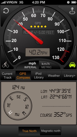 Speedometer GPS+ Optimized for iPhone 4S, 5 ,5S, iPhone 6, 6 Plus, iPhone 6S, 6S Plus, iPhone SE, iPhone 7. 7+ Features included - Switch between car speedometer and bike cyclometer. - Retina Display graphics for iPhone 4-4s, 5, 5S ,5C,6, 6 plus, New iPad.iPad Mini - Switch between mph or k…