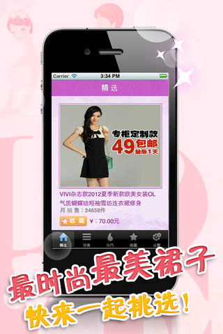 ☆appstore上最好的推荐应用☆ 约会指南:约会能随便穿衣吗?当然不能!除非你不在意结果。 男人实际上是很挑剔的时尚批评家,他们会通过观察你的穿衣判断你的品位和涵养,所以,MM穿衣不能马虎哦,既要要穿对衣服也要穿好衣服。 约会指南是你爱情之路的小天使,帮你挑选最适合约会的服饰。 裙子是展现女人身材最好的服饰,美丽的同时可以完美的凸显自己的好身材,用你美丽的装扮把目标收入囊中吧。 约会指南--裙子编收集淘宝商城内各种风格的裙子任你挑选,连衣裙、及膝裙、迷你裙、裤裙、长裙、中长裙种类包罗万有,让你挑花眼。 五大特点: 1:界面精美,极具现代时尚,适合最In的您。 2:折扣最低,为您选出商城最低价的精品服饰。 3:放心购物,所有推荐商品都是诚信卖家推荐。 4:浏览方便,打开手机就可以随时阅览最新推荐。 5:导航全面,细腻的分类为您节省大量点击的时间。 约会指南--裙子编是一款专门为了精打细算的你而推出的购物平台,同时更是将优惠价格摆放前列,优惠折扣尽情享受。见到喜爱的宝贝点击收藏,免去您购买时再繁琐的搜索查找。约会指南--裙子编提供的商品种类多,任您选择;分类更是明确,一键筛选,为您省钱省精力。 还在犹豫什么?赶快让约会指南--裙子编为您的生活添加更多姿彩吧~!