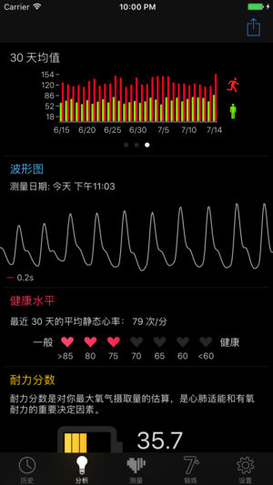 借助 Cardiio,你可以轻松测量心率,了解统计数据和健康状况的关联,通过有效锻炼来保持完美体形,并跟踪进展情况。 Cardiio 能让你的 iPhone 或 iPad 摇身变成心率监测仪! 全新的心率监测手段: • 仅需将手机或平板举在面前,或 • 用手指按住背面的摄像头,即可在数秒内读取脉搏 深入理解心率数据背后的意义: • 根据你的心率计算健康水平分数 • 计算你的耐力分数(最大摄氧量) • 查看你与外国友人和知名运动员的心率数据对比结果 • 获取针对特定性别和年龄的心率分析报告(*仅限 PRO 版) • 估算你的预期寿命(*仅限 PRO 版) 改善你的体形和耐力,让你越来越健康…