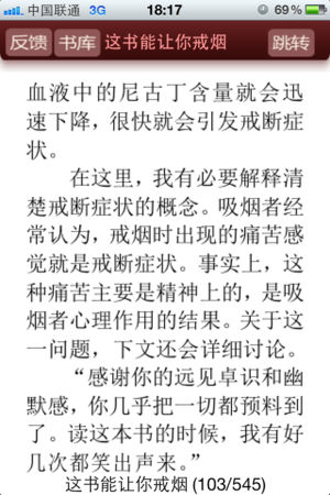 【内容简介】 戒烟究竟需要多长时间?1个月、1年,还是10年呢?不,只需要你读完这本书的时间!是的,我没有开玩笑!你为什么觉得戒烟如此之难呢?是你的心欺骗了你。 或许你感觉有些紧张,不知道是不是该翻开书页。或许像绝大多数吸烟者一样,只要一想到戒烟,你就会惊惶失措;尽管有一千个戒烟的理由,你却总是迟迟不肯开始。 与所有吸烟者一样,你掉进了一个险恶的陷阱,这个陷阱是由人类和大自然共同构建的。全世界没有一个父亲或母亲愿意让自己的孩子成为烟民,无论他是否吸烟。这意味着任何人吸烟都不是出于本意。香烟并不是生活中不可缺少的东西。 别犹豫。开始吧! 【请求帮…