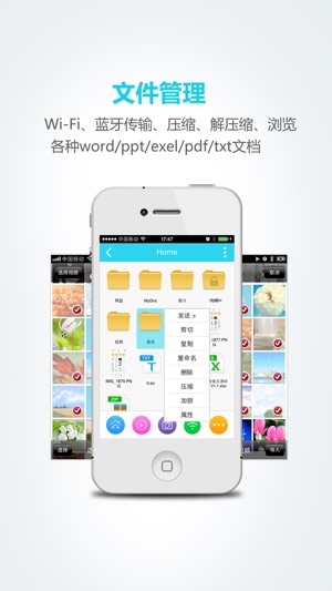 #最强大的文件管理工具,最高在30个国家排名总榜第1,装机必备,不下后悔!# #PC、苹果设备之间自由传输图片、文件# #内置网址导航浏览器,更安全# #超强视频播放器,文件阅读器 # #异地文件分享:长按要发送的文件,从弹出的菜单中选择“打开方式” 点击微信(或类似应用)即可分享文件给异地的好友。 您还使用连接线在手机和电脑之间拷贝文件吗? 您还在发愁电脑上的视频无法在手机上播放吗? 您还在担心手机上的照片或者视频等隐私泄露吗? 您还在郁闷无法打开邮件附件里的压缩文件吗? 您还在烦恼手机上的文件管理工具如此难用吗? 文件全能王的用途: # 把你的手机变成无线U盘,随时随地阅读、处理文件…