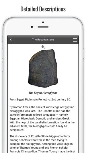 准备享受大英博物馆的经验?这个程序将帮助您发现这个世界级的博物馆,以有趣和轻松的方式,几乎享受出色的集合。不同于需要返还的语音导览,这个程序将继续留在你的口袋里,当你回家,这样你就可以继续随时随地享受大英博物馆,在任何地方。大英博物馆是家里的罗塞塔石碑。但是你知道,这也是家庭对数百等世界著名的对象? 里面的应用程序: - 所有楼层的全面互动地图 - 一对象的高分辨率图片。 - 重点文物的详细历史 - 搜索从数据库中的对象 - 对当前事件和活动的信息 –徒步游览: #名列前茅20 #名列前茅125 #希腊神话游览 #妈咪游览。 许多迷人的游览等候您在App里面!…