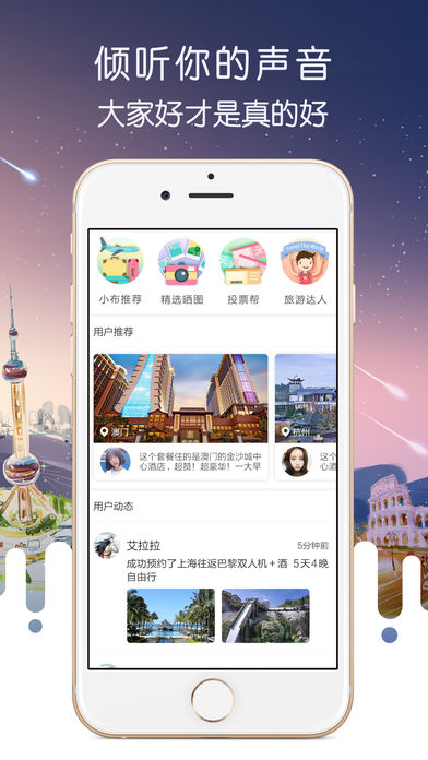 布拉简介: “布拉旅行”为您提供全球高端度假酒店的推荐和预订,是全国最大的酒店控聚集地,是一款能激发你度假灵感的旅行省钱神器,倡导轻奢度假的预订平台,网罗了国内各种有格调的星级度假酒店、精品酒店、温泉度假村和民宿客栈,每日推荐高性价比的度假旅行产品。为您准备好最精致的临时栖息地,做自由的全球候鸟,享受放飞自我,度假上瘾。 一秒下单: 1. 布拉旅行搜罗了国内外各地有品位、风景优美的度假酒店、精品酒店、温泉度假村和客栈,每日精心推荐,让你的度假选择靠谱而不纠结。 2. 第一时间采取省钱行动,手机1秒下单,说走就走。 高性价比: 1. 布拉旅行每日为大家推荐超值特价、有个性的度假产品。将度假游玩、娱乐活动和五星酒店、精品酒店住宿全打包,给你一个极高性价比的完整度假方案。 2. 帮你吃住玩一手搞定,为你精打细算,让你随时出发“爱”上度假。