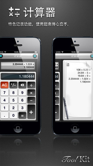 收纳使用最广泛,最实用的5款工具,全新定义移动工具,iPhone必备:手电筒,计算器,汇率转换,单位转换,尺子。 我们深度挖掘用户体验,注重使用便捷,从每一个细节入手。 力求打造最方便,最好用的工具。 ---------------------------------------------------------------------- ☆.计算器 去除多余的功能按键,专注日常使用需要,特色记录功能,使用起来得心应手。 ☆.手电筒 启动方便,还有开启自动启动手电筒设置哦.夜晚必备。 ☆.汇率转换 135个国家,地区的实时汇率转换。方便的货币选择界面,从此汇率转换一触即可。 ☆.单位换…