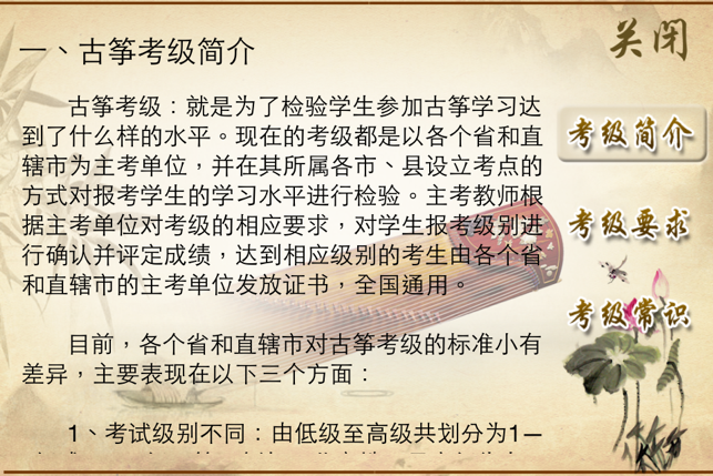 《古筝考级曲集-上海筝会版》是一款专门为古筝考级学生而研发制作的实用教学软件。产品根据上海筝会规定的曲目及定级标准,进行了全面细致的归纳整理,内容包含古筝考级介绍(各级演奏提示及要求、考级常识问答)、考级曲目欣赏、视频示范等。每一个级别有十二首曲目,每首乐曲均包括乐曲曲谱、乐曲介绍、演奏提示及要求。曲集全面、丰富多彩、特色鲜明;所选作品涵盖广泛,曲目具有代表性;各级别的曲目安排合理、科学。能够帮助考生更好地进行学习与备考。 《古筝考级曲集-上海筝会版》产品各级曲目如下。 【一级】曲目([GRADE ONE]): 凤翔歌(A Song…