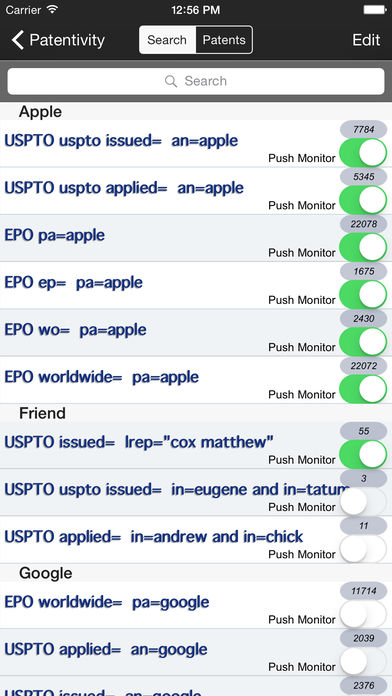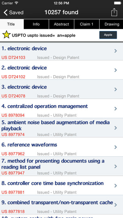 移动设备的PATENTIVITY - 专利搜索 ●●最好的专利搜寻应用在iOS上设计的好奇心理和工作的专业人士(如律师,工程师,发明家,投资者,教授,风险资本家) ●●的iOS 6 +视网膜准备为iPhone 5,iPhone 4S,iPhone 4,所有的iPod和iPhone OS 4.3 + ●●美丽的专为更大的屏幕与iPad接口布局 ●●登录解开基本7天免费试用 - 跨设备为iPhone,iPod和iPad访问 - 搜索美国专利局专利全文和图像数据库 - 搜索美国专利局申请的全文图像数据库 - 搜索谷歌高级搜索专利 - 搜索欧洲专利局+分类搜索 - ESPACENET定制高级搜索(全球,欧洲,WIPO) 搜索字段: ●专利# ●应用程序# ●优先# ●标题 ●全文 ●摘要 ●索赔 ●说明/规格 ●发明 ●受让人名称/申请人 ●律师/代理人 ●申请序号 ●申请日期 ●出版日期 ●美国分类 ●欧洲分类 ●国际分类 ●主考官 ●助理考官 ●+自定义高级搜索 *快速预览搜索结果的标题,信息,摘要,权利要求1 - 专利图片查看图纸的CoverFlow浏览 - 生成新的专利容易在旅途中的PDF + PDF阅读器 - 检索绘图,摘要,权利要求书,并说明 - 之前的艺术挂钩的专利文献和引文 - 访问先进的专利信息周期和家庭 - 新专利公报出版物每周日(星期二)上午10时CDT锋利! 必须LoggedIn来的任何帐户提供商谷歌,LinkedIn,Twitter的,脸谱,或微软Live。 - 保存最喜爱的搜索和专利 - 保存搜索发现数 - 组织搜索和专利项目类别 - 浏览过的专利标记读取时间更好地管理 ▶美国专利商标局的仪表板为重要的统计数据 ▶检察目录 - 按名称搜索,位置,和实践领域 ▶语言为西班牙语,日语,法语,汉语,葡萄牙语,印地语,阿拉伯语,韩语,德语,俄语翻译支持 - 说明,摘要和权利要求与谷歌翻译从英语翻译成任何目标语言 即将... ▶更多的专利源,如日本和加拿大... ▶商标搜索 ▶PAIR访问 ▶专利到期 我们正在与专利律师对新的令人兴奋的功能,但我们很乐意听到您的声音!征求意见和建议,请随时与我们联系。 ***应用程序需要应用内购买为基本及加包。请给我们发电子邮件或登录的任何问题。