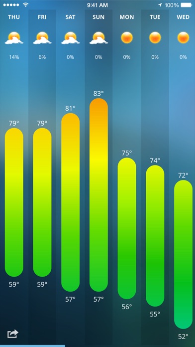 无论外面是冷是热,有了今日天气(Today Weather)就无需担心。Agenda Calendar 和 Buzz Contacts 的开发者为您带来全新的天气应用,让您在 iOS 上以前所未有的方式了解天气状况。 我们开发 Today 是因为你查看天气的方式需要改变。一般情况下,你只想知道当下的天气情况。但有时你需要了解接下来的几天天气如何。Today 包含三层显示: 1) 最高层的“缩放”让你可以编辑地区信息。 2) 接下来是“控制台”,在这里你可以看到所有地区的主要天气信息。 3) 最后一层显示特定城市的详细天气信息,包括天气预报,今日天气和每小时天气。 操作非常简单,只需轻点地区即可进入更深一层。使用右下角的向上箭头(也就是缩放按钮)可以回到上一层。你也可以利用双指开合手势进行操作。 =====功能================== + 反应快速、数据精准 + 精心设计的天气状况显示 + “今日”视角专注于一天 + 雷达显示降水预报* + 本地时间及风向风速 + 恶劣天气应用内警报** + 普通和“极客”两种天气预报显示方式 (轻点天气预报显示进行切换) + 每小时天气预报附带日出日落时间 + 上下滑动轻易转换城市 + 显示所有城市天气状况 + 缩放操作更易编辑 + 使用“缩放”按钮进行缩放,或者 + 双指开合进行缩放 + 背景随日出日落更换 + 华氏度和摄氏度切换 + 城市中不同区域切换 *美国 **美国及欧洲 =====取得联系============== 对我们的应用有问题吗?要提出功能上的要求吗?您可以通过设置来访问“今日”网站 http://savvyapps.com/today,我们有常见问题集,可以解答 98% 的问题。
