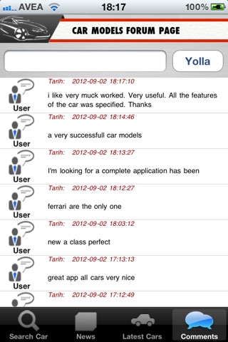 Application and examine all the features of car models car models. ★ ★ THANK YOU FOR YOUR INTEREST IN INTENSIVE ★ In practice, all car brands, models are available. ★ examine the latest brand cars. You can compare. ★ Post your comments on the share. ★ Car models, you can watch videos. ★ examine pictures of the cars. ★ Car in the world will know the latest news. ★ Forum on the car problems, you can share your comment. ★ GENERAL FEATURES OF CAR - Market Price, Consumption Rate, Performance, Security - The car's official - Fuel Type - Transmission Type - Number of gears - Consumption in the city - Extra-urban consumption - Average Consumption - Mileage Per Capita Consumption - Maximum Speed - 0-100km Acceleration - Annual Tax - Cylinder Displacement - Horse Power - Maximum Torque - Body Type - Length - Width - Height - Empty Weight - Luggage compartment capacity - Fuel Tank - Thinned a lot of features, such as the Warranty Period. All this and more as we offer $ 0.99 for a short time. Thank you for your keen interest.