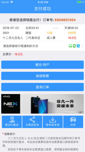 “铁路12306”是中国铁路客户服务中心推出的官方手机购票应用软件,与www.12306.cn网站共享用户、订单和票额等信息,并使用统一的购票业务规则,软件具有车票预订、在线支付、改签、退票、订单查询、常用联系人管理、个人资料修改、密码修改等功能,为旅客提供方便快捷的手机购票全新体验。 产品特色: 1.本软件为官方购票软件,数据及时准确,交易安全可靠。 2.与www.12306.cn网站购票功能保持同步,可在手机和网站之间交叉办理购票、退票、改签等业务。 3.支持工商银行、农业银行、中国银行、建设银行、招商银行、中国银联、中铁银通卡、支付宝支付、微信支付。