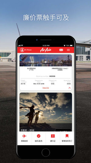 您最喜爱的目的地,尽在掌握中! 亚洲航空移动应用程序让您轻松预订航班,并且随时随地办理值机! 查看我们最低航费、管理您的预订及提前预订餐点、座位、行李及旅游保险。 当您通过应用程序报到时,您将收到手机条码。前往机场的自助服务亭扫描条码,就可打印您的登机牌。如果您没有行李需要托运,您也可以选择取得电子登机牌,直接前往登机门。 马上下载应用程序,踏上您的梦想假期之路!