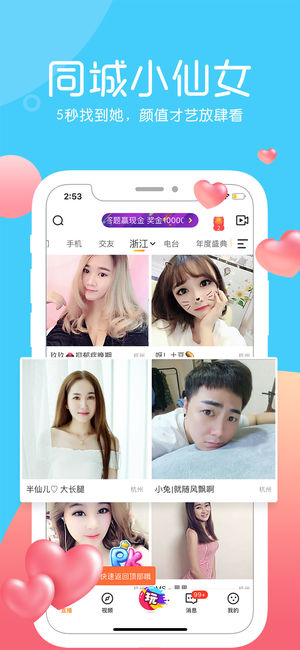 KK直播,一款暖心的在线视频直播软件,聊天娱乐交友神器!满场高颜值主播,每天都是好心情! 帅哥靓女视频、直播连线,才艺PK,情感电台,私信交友,手机直播,尽在KK直播! 【玩法特色】 (1)看直播。喊麦搞怪,直播逗趣,随时随地拿出手机就能看到在线视频才艺秀,免费观看欣赏。 (2)享畅聊。免费即时沟通,支持一对一、视频连麦、悄悄话,胡聊海聊谈天说地,畅所欲言,欢聚一堂。 (3)听电台。当下流行音乐和段子,情感沟通,晚安心语,直播互动声优尽享。 (4)玩游戏。最新奇游戏玩法,开心抓娃娃、开心刮刮乐、全民才艺PK,同主播一起玩游戏,从此不孤单。 (5)嗨节目。拼脑力拼手速的《金榜题名》答题赢现金…