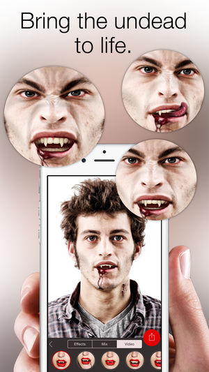 Vampify - The #1 Vampire face app! USA TODAY - "I can't get enough of turning myself into an animated Vampire (Vampify), Werewolf (Wolfify), [or] Zombie (Zombify)" - Jennifer Jolly Come back to life as a 3D animated vampire! Your immortal self will blink, snarl, bite, grow fangs and more. You'll s…