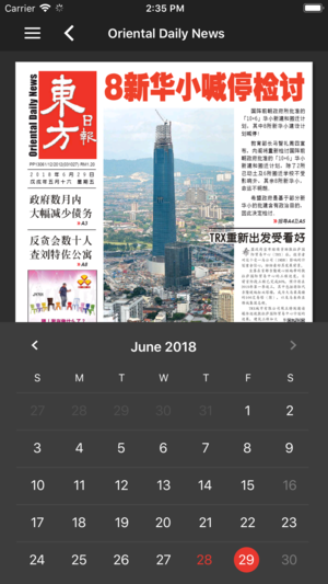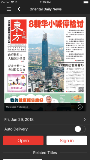 马来西亚《东方日报》, 簡介 马来西亚华人社会的眼中,《东方日报》是一份敢写真相、独立、中立的中文日报 ; 让公众看到新闻事件真相,更常表述了人民心声与进言。 《东方日报》創刊於2002年9月29日,总社坐落在首都吉隆坡,定位为中上阶层的优质报纸,重视传达知识、带动社会进步。凭着敢开新风的精神,《东方日报》是马来西亚第一家以小開版 (compact-size) 出版的日報,更是第一家和唯一,全年365天都有出版的报纸。 这份报纸除了深度新闻報導与评论无畏无私,同時讲究图、文编排,内容易读、易懂。其他丰富内容还包括财经、国际、体育消息,以及生活资讯方面的娛樂與時尚動態等。 今天,《东方日…