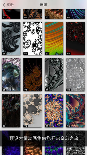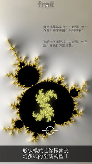 ** Macworld 编辑选择奖! ** Stephen Fry: “这个应用美得让我流泪!” Smithsonian: “身临其境。” CNET: “壮观。” Macworld: “精致。” ● FRAX Frax是一个把“自然方程式”带到你掌中的艺术程序。Frax由分形几何驱动,和我们自然界中众多“自相似”形态原理相同。从星系旋臂到飓风,从树木的枝杈到错综的血管网,宇宙中有无数变幻多端令人惊叹的美丽事物。Frax将这自然的几何密码呈现了出来,让你能探索巨幅的数字动画或是创作出属于你自己的杰作。 探索 深入地放大你的作品。使用多点触摸手势在错综复杂的形状和图案中穿行,倾斜设备…