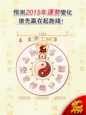 想全面掌握自己在新的一年运势凶吉吗?想知道自己和自己在乎的人在新的一年如何趋吉避凶吗?在担心自己新的一年打不开运吗?下载【2015年开运宝典】,抢先把我运势的机会! 【2015年开运宝典】由国内著名命理专家叶冬灵大师为你分析2015年羊年最精确的生肖运程命理,从事业、财运、感情、健康等多方面为你解析2015羊年整体运势。 【2015年开运宝典】同时为你提供开运宝符。多种开运宝符为你对症下药,全面开运。 特点: 大师分析预测。专业性,实用性,全面性无可挑剔。古今结合,解析运势。 界面精美,以中国古风工艺——生肖剪纸为主题,简约而尽显大方。 操作简便,趣味性、互动性强,随时随地朋友圈、微博分享。 独家化太岁方法,开运旺运一整年。 操作简便,趣味性、互动性强,随时随地微博分享。 微信灵机提供了各类精准运势测算、专业命理app免费下载、最新鲜命理资讯、大师亲算等多项服务。 想体验最受欢迎灵机命理馆的专业服务,您只需要在“微信”上通过搜索,找到我们。方式是: 1.添加朋友->查找微信公众帐号->输入“灵机”,确认搜索即可。 2.添加朋友->搜号码->输入“lingjimiaosuan”,确认关注即可。 算卦占卜灵接触:http://www.linghit.com