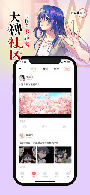 快乐大本营官方推荐漫画APP、95后大爱的动漫平台!三万部全彩热门漫画、二次元主题社区,等你嗨翻天,赶快来下载吧! 1、三万部全彩漫画 丰富题材看过瘾 【狐妖小红娘】世上有人有妖,妖与人相恋。人会投胎转世,但投胎以后,不记得上辈子的爱。妖如果痴情的话,就去找狐妖“购买”一项服务,让投胎转世的人,回忆起前世的爱。 【一人之下】“如果有一天,你发现自己和别人不一样”。为了解开爷爷和自身秘密的张楚岚和没有任何记忆“不死少女”冯宝宝开启了“异人”之旅。 还有“航海王(海贼王),火影忍者、从前有座灵剑山、通灵妃、超神灵主”等三万多部热门漫画等你来撩,涵盖日韩,少女,热血,悬疑,耽美,科幻,治愈…
