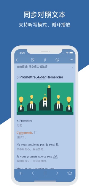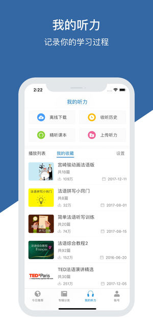《每日法语听力》是学习法语必备的听力软件 - 拥有每天更新的海量听力库,并独家提供智能语音高亮跟随功能。 - 与权威的法语词典软件《法语助手》无缝集成,查词典、背单词轻松搞定。 - 全新百科智能提示,让你训练听力的同时不知不觉增加法语词汇量 - 全新FM电台功能,实时流畅收听最新法语节目,锻炼法语听力必备 【每天更新的海量听力库】 - 每天为您推送RFI, TV5 等法语媒体最新的听力资源 - 每周为您推送由专人编辑整理的法语学习资源 - 收入海量日常会话训练、名人演讲资源 - 独家支持语音高亮跟随功能 【体贴的操作方式】 - 独创LightPeek划词搜索功能,对文章中的单词即指…