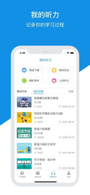 《每日英语听力》是最好用的离线听力软件 - 拥有每天更新的海量听力库,并独家提供智能语音高亮跟随功能 - 与拥有海量词库的《欧路词典》无缝集成,查词典、背单词轻松搞定。 - 全新百科智能提示,让你训练听力的同时不知不觉增加英语词汇量 - 全新FM电台功能,实时流畅收听最新英语节目,锻炼英语听力必备 - 支持 听力上传,听众能在官网上传自己的资源,我们为您制作同步高亮字幕 - 可以和《欧路词典》同步生词本、笔记,学英语必备 【每天更新的海量听力库】 - VOA标准、VOA慢速、NPR新闻每天更新 - 收入海量新概念、GRE、TOEFL听力资源 - 收入海量日常会话训练、名人演讲资源 - 独家支…