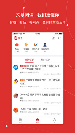 有人的地方,就有江湖;有手机电脑和AI的地方,就有IT之家。 IT之家(www.ithome.com)是一个致力于提供IT业界和数码产品资讯的科技媒体平台。快速、全面、客观的精选科技新闻头条,分享即时的行业新闻动态、潮流的数码产品资讯、前沿的科技创新趋势,提供给力的手机设备和数码设备技术文章、丰富的系统应用美化资源。IT之家移动阅读,让你随时随地享受清爽阅读的体验,轻松掌控IT人类的生活。 软媒诚意之作,欢迎下载体验。 ===IT之家能做什么=== 1、即时IT资讯,随地掌控面向未来的前沿技术潮流、科技趋势和数码产品信息; 2、IT大事件直播,国内外全新软硬件产品发布和科技行业大…