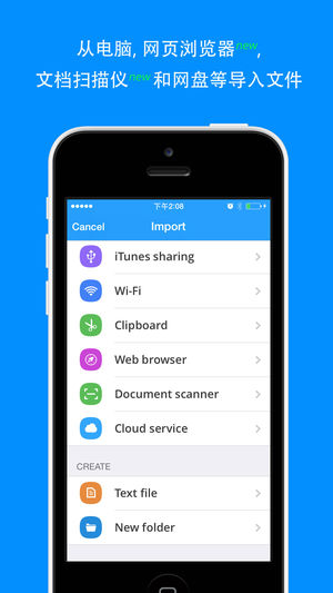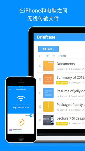 ********* iPhone必装文件管理工具,1元特价中************ 掌上公文包是一个功能强大的文档阅读器和文档管理工具,支持iPhone,iPad和iPod Touch。 掌上公文包支持从相机,相册,PC/Mac(通过Wifi或iTunes文件共享),电子邮件和网页附件,系统剪贴板,创建文本文件,云存储服务(GoogleDrive,DropBox,SkyDrive,Box),第三方应用等途径导入文件,所有文件都保存在您设备本地进行安全地集中管理,您可以随时随地尽享阅读的乐趣。 ======== 特性 ======== ● 通过Wi-Fi或iTunes文件共享快速导入文件…