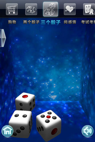 这是一款集实用,娱乐,趣味于一体的神级高端应用。有了它……你能改变你的生活…… 拥有更多情景模式,更多背景选择,更多惊喜意外的结果命令。随时随地都能拥有更精彩的游戏应用。 每天的生命都浪费在了早上吃什么,晚上吃什么,夜宵吃什么,这样毫无意义的选择题上了吗?颓废了啊!寂寞的骚年们!青春啊躁动啊面对那ABCD的选择题无奈啊?简直是天敌啊有木有!这被BUG了的青春!!! 家里的太后 皇后和公主忒难伺候……这个时候恨不得有金克拉一袋能顶两袋撒。 ……当这一切一切的苦摆在你面前的时候,选择就是你一辈子的痛,不能玩上帝就躺平让上帝玩你~ 特色: 真实3D引擎制作,3D表现无与伦比 高精度3D模型,骰子表现更加真实 完全拟真的物理运动,让撞击更有力 精确的重力感应,摇的更过瘾 丰富的情景设定,想什么时间用就什么时间用! 可更换背景的3D箱体,美轮美奂 意想不到的特殊结果,惊喜不断 多达23种不同骰子:标准、决策、考试、约会……