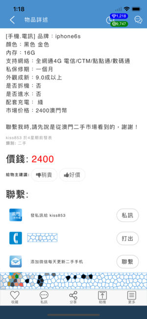 https://www.kakafun.com/mo2hand 免费!完全免费!再送QRCode扫描功能!! 一个为澳门人而设的二手市场,分别有服装.配饰,美容.护理,亲子.育乐,数码.电脑,手机.电讯,车类.配件,楼盘.车盘,家居.生活,服务.供求,票券.收藏,玩具.精品,书籍.漫画等分类,好让各位可以找到心仪的物品,促进二手重用,为环保出一番力!请大家齐来参与! 使用条款/私隐声明: 1.透过使用本平台【澳门二手巿场】,用户即表示已接受下述所有条款。且本平台具有权修订并公开张贴本平台的任何条款。 2.禁止发布非法丶侵权或不合理的物品,违者内容被修改,移走或删除,毋须另行通知。…