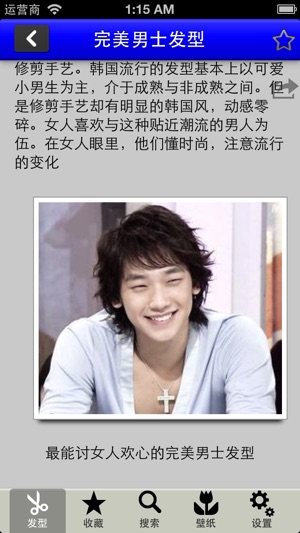 为时尚男生提供2012年最新流行男生发型图片,各种男生发型设计,让男人们更显自信,更受女人们喜欢。 男生仿佛天生习惯于短发,短发给我们阳刚,营造动感 ,短发可以分为短碎,波浪短发,多款男士短发总一款适合你的。分享时尚男士短发发型,男士长发发型,男士烫发发型,男士染发发型,男式明星发型,韩式男发型,发型设计造型,头发护理等图片资讯。 男士们也可以拥有潮流发型。难道你还甘心保持原来古板的发型,而不愿跟上潮流风向,尝试作一些改变吧! ★ 发型大全,完全免费! ★ 完美的收藏功能, 让你更方便的使用! ★ 完美的离线功能,不使用手机流量! ★ 图文并茂,分布详解,时尚发型一看就…