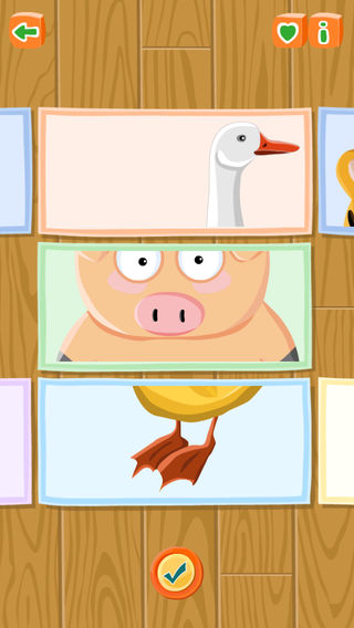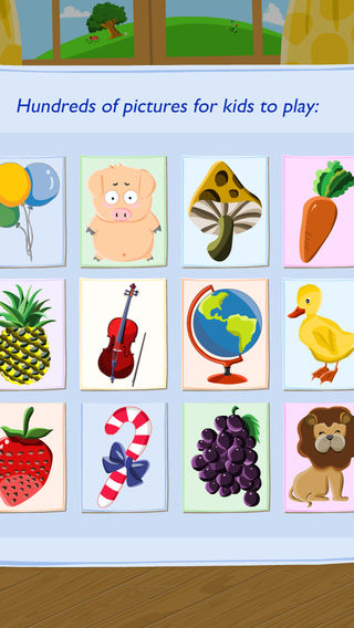 ★ 数百个完美高清图片,支持Retina显示! ★ 纯正美语发音! 这是一款非常棒的幼儿游戏,宝宝可以边玩边学英语! 有很多漂亮的卡片散落在地板上,宝宝任意挑选一片,然后找出另外两片相匹配的卡片,拼成一张完整的图片,同时对应的英语单词就会出现,而且配以纯正的美语发音! 这里有几百张有趣的图片需要宝宝来完成,包含各种类别:动物、水果、蔬菜、玩具、乐器、海洋、农场。。。 2到6岁的宝宝正是形象记忆的最佳年龄,通过具体物品来认识单词,在有趣的游戏过程中轻松学习英语! 您的宝宝一定会喜欢上它!