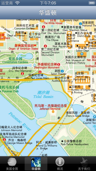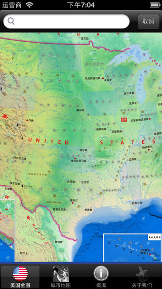 《美国离线地图》由中国地图出版社的《世界分国地图》系列改编而来,该系列地图覆盖了世界200多个国家和地区。 《美国离线地图》提供了美国全图浏览和查询功能。并且有6个美国主要城市的街道图,包括华盛顿、拉斯维加斯、纽约、旧金山、洛杉矶和芝加哥。美国概况从自然 历史 文化 经济 城市和旅游地 知识集锦等几个方面全面的展示了美国的概况。《美国离线地图》还提供地图查询功能, 能够根据用户的查询定位到兴趣点。本产品充分利用iOS平台的新特性, 将多点触摸, 浮动显示, 横竖旋转等特点与地图功能结合起来, 使用更加简洁方便。《美国离线地图》是您了解美国, 旅游美国的好帮手。 #纸图版畅销30年 审图号GS(2011)1441号 #全新改版 #详细地名 #中外对照 #内容全面 #地图权威 千图网(map1000.com)是中国地图出版集团数字出版分社的独立网站品牌,其目的是为了向用户提供多样化的优质地图产品及服务。千图网 专心作图 专业作图!敬请期待千图网更多其它地图产品。 全面支持iOS5,iOS6,iPod Touch,iPhone和iPad。