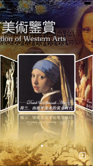 专门为所有华人设计,欢迎来到西方美术的世界 你曾今是不是对西方美术产生了浓厚的兴趣但苦于找不到满意的欣赏途径? 你曾今是不是对西方美术的各个流派迷茫和不解? 你是不是想对文艺复兴三巨匠的作品、生平等有更深入的了解? 你是不是想知道西方美术世界中出现了那些用色的高手? 你是不是有时看到一幅画作,非常的熟悉但又不知道它出自那位名家之手? 你是不是曾经看到喜欢的画作但是却因无法下载而苦恼? 还有更多的关于西方美术的疑问,你都能从《西方美术鉴赏》中找到答案。 《西方美术鉴赏》从13个流派为您介绍了西方美术的历史,发展,演变,各个时期著名的艺术家和艺术作品。从中您能领略到整个西方美术世界的魅力。 《西方美术鉴赏》的13个流派包括: 美术的起源(原始社会美术); 古代希腊(希腊建筑,雕塑); 中世纪美术(早期基督教美术、拜占庭美术、罗马式美术和哥特美术); 文艺复兴美术(弗罗伦萨画派、文艺复兴三巨匠、北方文艺复兴和威尼斯画派) 巴洛克艺术; 荷兰小画派和17世纪西班牙美术; 洛可可美术; 浪漫主义美术(新古典主义、浪漫主义、现实主义、巴比松画派等); 印象主义美术; 后印象主义美术; 立体主义与毕加索; 超现实主义与Frida Kahlo; 20世纪西方现代美术; 《西方美术鉴赏》App 采取CoverFlow的形式,专门为本App设计的界面,用户通过滑动coverflow切换每个流派,点击cover的时候你就能浏览此流派下的内容。每个流派中的内容都经过精心编辑和修改,是绝佳的西方美术知识内容。每个艺术流派下也会选取有代表性的艺术家和代表作来为您展示和介绍。 本App不仅仅是单纯的问您展示一些美术名作,还会从历史、背景、技巧等方面进行介绍 同时,当您点击主界面下方的+号时,我们为每个流派都挑选了许多的扩展欣赏内容,包括: 阅读:和本流派相关的阅读内容; 作品:属于本流派下的世界名作名画; 聆听:精心挑选的古典音乐,让您在欣赏名作的同时,也能领略西方古典音乐的魅力。 本App的特色功能及特点还包括: 94篇关于西方美术的扩展阅读内容,让您了解跟多关于西方美术名家名作的知识; 773幅高清世界名作,从雕塑到绘画到建筑,从古典到现代。如果这是你需要或喜欢的画作,你可以保存到相册或email到你的邮箱。 72首西方古典音乐名作。 针对Retina高清屏幕和iPhone5进行了优化,让您看到栩栩如生的艺术作品。 每一幅名作都有详细的英文(或中文)介绍,包括年代,流派、画作载体、尺寸、创作年代等; 我们还在不停的收录着,会有源源不断的内容加入…… 支持放大、缩小、双击放大缩小等手势,为您带来流畅的操作体验。 支持缩略图和书签,方便阅读。