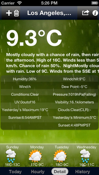 iWeather -- your quick and accurate weather app, provides the most accurate and relevant weather information whenever weather matters to you. With 500+ meteorologists and our ultra-local forecasting technology, we provide you with the weather tools you need to plan your day, week, or even the next hour. we delivering the most reliable, accurate weather information possible. Our state-of-the-art technology monitors conditions and forecasts for locations across the world,we provide detailed weather for 2.7 million locations worldwide. Forecasts updated each hour with information for the next 15 days – all in 27 different languages. it searches for cities and locates them quickly, and provides the current temperature, current weather condition, humidity and wind status, in addition 30 years weather history. while the app comes with a cool widget, cool icons, portrait and landscape user interface. Weatherproof your day with these popular features: •Provides current weather condition and 15 days weather forecast. •Exclusive Lifestyle Forecasts showing how current conditions affect specific health risks or even your favorite outdoor activities. •Social media sharing (eg facebook,twitter..) so you can share your location’s current conditions, hourly, or 15-day forecasts using the social media apps you installed on your phone. •You can set your preferred temperature unit, Celsius or Fahrenheit. •Automatic update intervals are: 15 min, 30 min, 1, 3, 6, 9, 12 hours or Manual update. •Auto location detection. •Up to 10 different locations. •Weather map with ability to add any city to city list •Notification alerts. •Localized to English, Danish, German, Bulgarian, Finnish, Dutch, Slovenian, Romanian, Arabic, French, Croatian, Turkish, Czech, Spanish, Italian, Portuguese, Hungarian, Russian, Portuguese (Brazil). Features: Download iWeather and start experiencing the most accurate and local weather forecasts available!