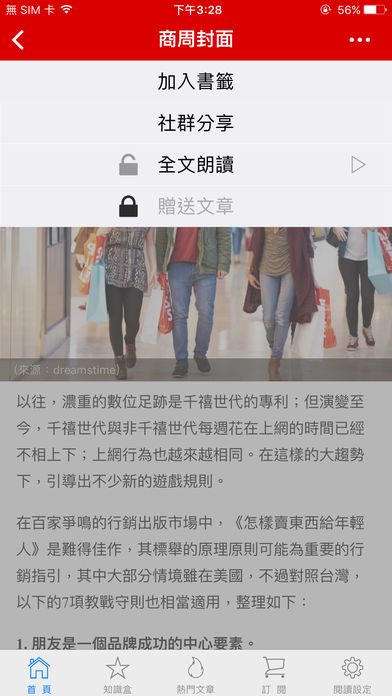 商業周刊給您,重量級的內容,輕量級的閱讀! 『商周隨身讀』是由「商周集團」與「Acer Inc.」共同合作開發之內容閱讀應用程式,是一個能讓您輕鬆閱讀,隨時掌握《商業周刊》的APP,同時支援iPad及iPhone。 『商周隨身讀』內容包含《商業周刊》近五年的報導文章,依照屬性共將之分為九大頻道:商周封面、兩岸國際、產業風雲、人物報導、職場管理、財經金融、學習成長、焦點話題、alive優生活,以清爽的畫面和簡潔的功能,讓您快速上手,輕鬆閱讀。 ■注意事項: 1.本服務需透過網路連線才能更新最新文章。 2.因文章版權使用範圍限制,本服務不含部分外稿或專欄文章。 3.若您有使用iTunes付費訂閱,更新後請記得至訂閱頁面(購物車),按下「訂閱恢復」,恢復您的訂閱。 4.2017年5月起,採用新應用內購買方案,原已訂閱者,可以繼續使用原訂閱價自動續訂,直到訂戶主動取消此應用內購買方案。 ■訂閱說明: 1.本服務提供部份免費開放文章閱讀;亦可登入商周會員,每月可選擇指定篇數付費文章閱讀,當會員選擇的文章期限到之後,該文章將會關閉。若您有閱讀更多文章需求,歡迎選擇訂閱方案。 2.本服務提供訂閱方案:一個月NT$290元 / 三個月 NT$780元 / 一年 NT$2,990元,訂閱後即可無限閱讀所有文章。 3.本服務提供免費七天試閱,若您選擇免費試閱,在試閱到期後,將會自動從您的iTunes帳號中,依照您所選擇的訂閱方案價格扣款。 4.本服務的訂閱均為自動延展續訂,於訂閱到期日前24小時內,自動從您的iTunes帳號中扣款。 5.若要取消訂閱,需於到期日前24小時(含)內,至您的iTunes帳號內的「訂閱項目」關閉「自動更新」。 6.當關閉自動更新時,您就不會再收到訂閱項目的帳單,但訂閱項目將會繼續直到到期為止。 7.訂閱後如欲取消,僅能於下個月/下一季/下一年度開始取消,在有效期間內無法提前取消訂閱服務。 ■若您使用上有任何問題,需要我們協助,請EMAIL至客服信箱:mailbox@bwnet.com.tw