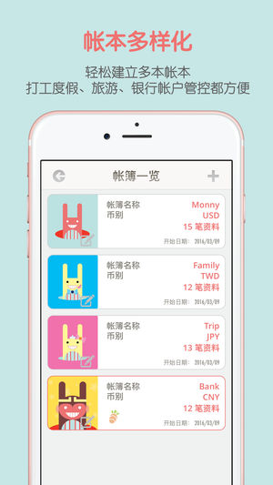 *** 马上开始跟着活宝兔一起来场理财探险,让美梦成真 *** 让活宝兔陪你练出最重要的个人理财心法。你就是迈向财务自由的关键: ~ 爱理你的钱 ~ 发现不必要 ~ 实践梦想吧 *** 特色: ~ 简单快速,记帐很容易 ~ 亲切实用的分析:报表,图表,排行榜 ~ 挑战小游戏,锻炼你的理财力 ~ 收藏个人理财纪念戳 ~ 个人档案,理财情况一目了然 ~ 多本帐册,出国打工度假、游学、深造、旅游都方便好用 ~ 资料备份:输出、输出、email、csv ~ 贴心每日提醒, 不再忘记记帐 ~ 密码锁功能,不再怕资料被偷看 记帐活宝兔monny免费下载使用,并提供活宝兔聪明报表试用,且随时都可在APP内…
