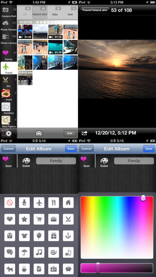 本'相片簿'可使用iPhone默认设置的'照片'软件中的资料(照片/视频/相册) '与其他相册管理软件不同的是无需对照片或视频复制后储存。 因此具有以下优点 - 无需对照片或视频的储存进行添加空间的要求。 - 因此与其他相册管理软件不同的是对于相片簿的删除或苹果手机的丢失不会造成照片丢失的危险。 - 无需每次对贵重的照片进行备份。 - 与苹果手机'照片'软件完全同步。 - 为了更加方便对相册管理提供按日历查看及按月份查看功能。 - 为了将相册能够更加详细分类而提供小分类相册功能。 [主要功能] ● 与苹果手机'照片'软件同步 - 将相机胶片,照片流,照片资料库,相册中的照片同步化即时呈现。 ● 简易的相册查看画面 - 提供按月份查看,按日历查看,小分类相册等功能。 - 按时间顺序查看照片,何时拍摄即可而知。 ● 照片移动容易及共享 - 将您所需要的照片通过拖曳,放入相册可进行添加。 - 可以使用对Facebook, twitter(推特), 邮件,扩印,指定联络处,复制等共享功能 ● 相册管理 - 可添加小分类相册(初始状态为Off) - 可添加新相册 - 可指定图标和图标颜色 [须知内容] - 由于可查看iPhone'照片'软件中的照片和相册,因此若删除'照片'软件中的照片和相册,'相片簿'也一并会删除。 - 若对相册进行删除,名称修改以及照片删除,请使用苹果手机默认软件中的'照片'。