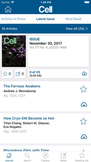 Cell Press Journal Reader It just got a whole lot easier to keep up with the most important advances from 32 Cell Press journals on your iPad, iPhone, or iPod! • Stay ahead with alerts when new issues are available and read Articles in Press throughout the month • Experience innovative digital cont…
