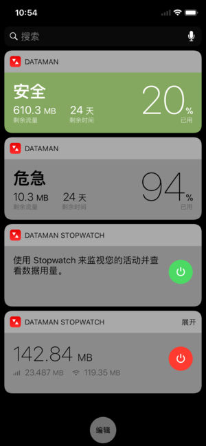 最简单,最易懂。DataMan 是你对抗套外资费的最佳 app。 个个网络,实时监控。DataMan 能全面监控你的蜂窝移动网络(LTE/4G/3G)和 Wi-Fi 流量。 快速便捷的流量 Widget。随时随地向下滑动打开通知中心,就能让你一目了然流量情况。 直接在 Apple Watch 上就能了解你的流量情况。只需轻抬手腕,重要流量统计数据就尽在掌握。 智能的流量预报。先进预测技术根据你剩余的流量和时间而预计你月底会否超出套餐流量限额。 监视网络连接。揭开所有连接的主机名和IP地址,这样你就可以分析它们是如何影响你的数据用量。 每时和每日统计数据。让你实时得知你每一天和每一小…