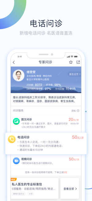 微医(原挂号网),互联网医院国家试点平台,聚合了全国30多个省份的2700多家医院、7500多位学科带头人、20万副主任以上的医师,已为5.8亿人次提供预约挂号、在线诊疗、电子处方、在线配药等全方位就医服务,是中国互联网医疗的领导者和中国新型医疗服务体系的构建者。 主要功能: 【预约挂号】 号源覆盖超过70%的三级医院,连接30个省市的117家医联体,并提供VIP号源提醒,专属客服等服务,助您摆脱排队烦恼,轻松实现预约挂号。 【极速问诊】微医优选三甲医生,15分钟快速响应,深度交流不限次数,专科咨询对症寻医。 【云药房】 专业医生团队全天候服务,上千种OTC和处方药品,一键下单,送药到家。此…