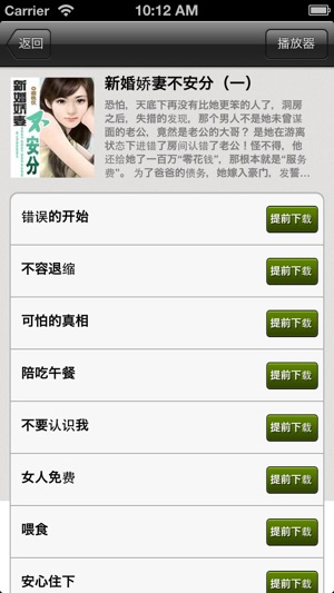 动听中国,最大有声读物在线平台,悄然回归,再续激情。 1 有声小说在线收听,也可提前下载离线收听 2 言情,评书,都市,相声等二十个频道,千万部有声读物 3 某些频道未成年,慎重收听 4 高品质的声音,带给您身临其境的感受 5 热点功能,点播最多的读物排行,方便收听 详细介绍: 热点列表是根据点播最多读物排行,当前列表为:飘飘欲仙、东北往事2-黑道风云20年、郭德纲对口相声全集、鬼吹灯1--精绝古城、金鳞岂是池中物、实用风水(易经运用到都市风水,实用风水讲解)、三国演义(单田芳)、蓝天航空公司的空姐、养生(都市快节奏养生秘诀)、两性笑话集、减肥瘦身(不吃药,不节食,听大师讲怎么轻松瘦身)、老…