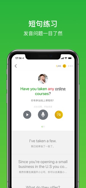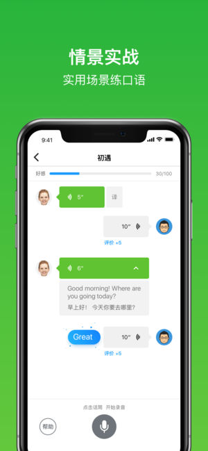 流利说(LAIX)正式登陆纽交所!感谢八千万用户的支持! 被苹果官方评为App Store“2013年度精选”App(语言类唯一入选App) “英语流利说”是一款好玩又有效的英语口语学习软件,让你“忍不住开口说英语”! 【“懂你英语”核心课程】 根据你的英语水平量身定制系统化课程,不背单词,不学语法,也能全面提升听说读写。 【系统的内容编排】 每日更新地道实用的英语对话,带动口语、单词、语法、听力、阅读等能力的全面提升。 【丰富的学习素材】 课程内容覆盖日常会话、商务职场、旅游出行,校园生活等各类场景。 【会打分的口语外教】 内置来自硅谷顶尖语音识别技术,给你的英语口语实时打分,矫正发音。…