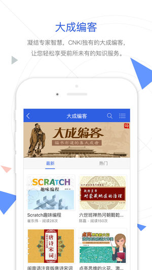手机知网是中国领先的移动知识服务平台,同时将大成编客,心可书馆集成其中。提供全国上万种期刊、报纸、图书等内容个性订阅,以及各类专题知识定制、行业情报推送、文档阅读管理等独具特色的强大知识服务功能,无论工作上还是生活中,都是您必不可少的阅读学习和创新研究工具。 亮点特色: 1.个性定制,实时推送个性化内容便捷订阅,并将前沿内容实时推送到您的手机。 2.丰富内容,自由选择 3000余种大众杂志,精彩纷呈。 7900余种学术期刊,同步更新。 学科手机报,学科情报早知道! 全国重要报纸,前沿资讯报道。 亿万文献资源,快速自由定制。 3.新的旧的,一览无余 1994年以来的期刊(部分精品期刊回溯至…