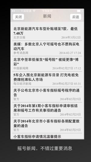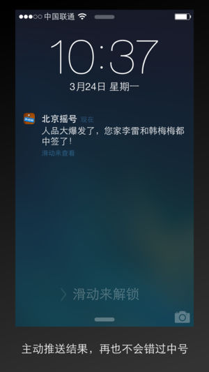 北京摇号应用是凡心工作室开发的小客车指标小管家。支持以下功能: 1. 家庭摇号管理 2. 中签通知、延期通知、不中签通知 3. 汽车摇号相关的新闻 4. 不用再忍受官方网站的持续崩溃,第一时间获得中号情况,首创超快得到摇号结果,比官网快至少半个小时知道中签情况 特别说明: 1. 本应用是民间应用,为了安全不支持小客车指标官网的账号密码登陆,所有信息都是用户自行填写 2. 很多用户反馈的时候以为我们是官方应用,所以各种谩骂,请大家理性克制,学会忍耐 3. 本应用的服务由于不是官方应用,对于信息的准确性不具有权威效力,当我们通知您中签或未中签时,可以去官网再确认一下